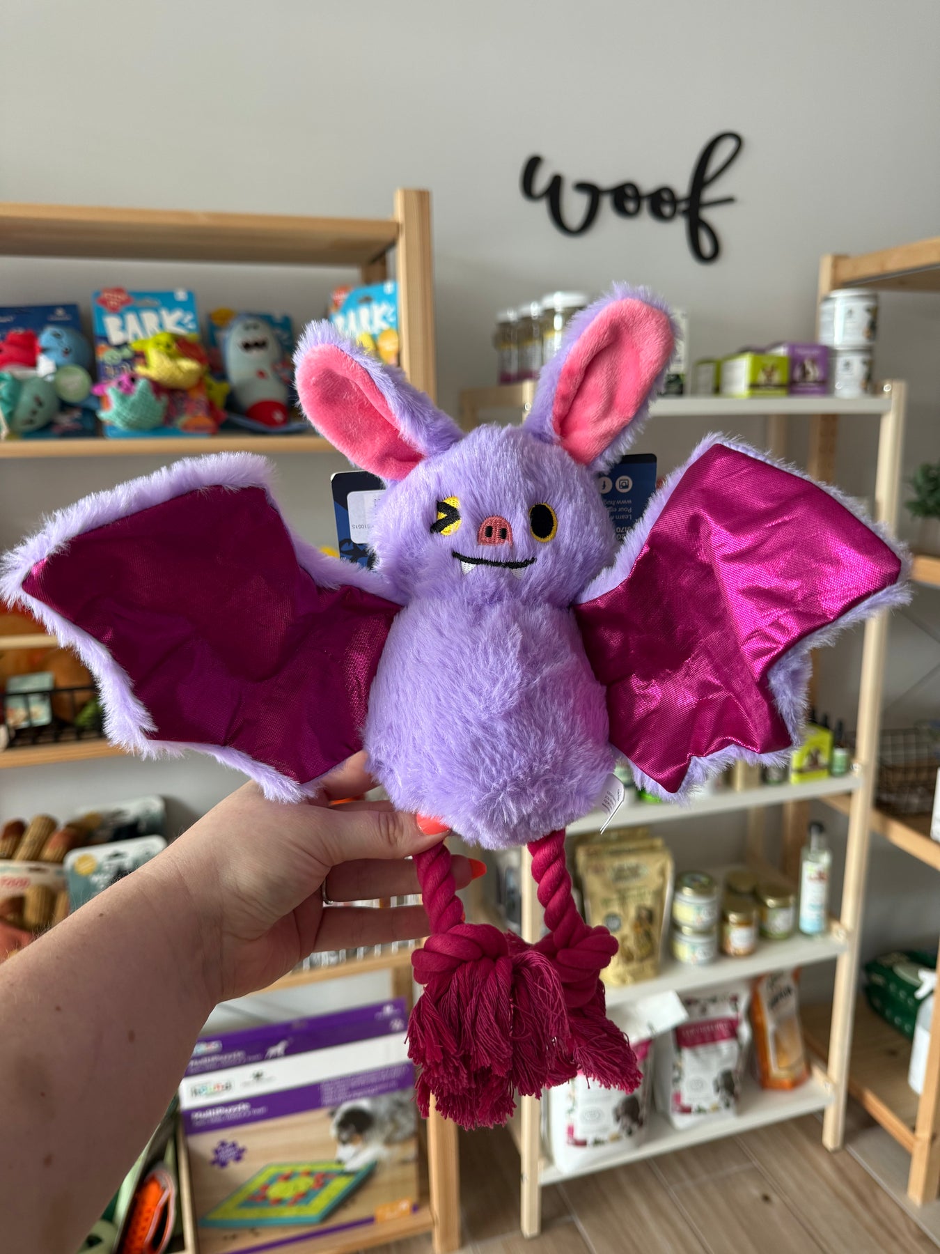 Watch out, this bat toy is here to spook up your pup’s playtime! Made from super fuzzy fabric, it features sturdy twisted rope legs that are perfect for tugging and chewing. The shiny crinkle wings add an extra layer of excitement, creating a fun crinkly sound with every bite. Inside, a hidden squeaker keeps your furry friend engaged and entertained for hours.
